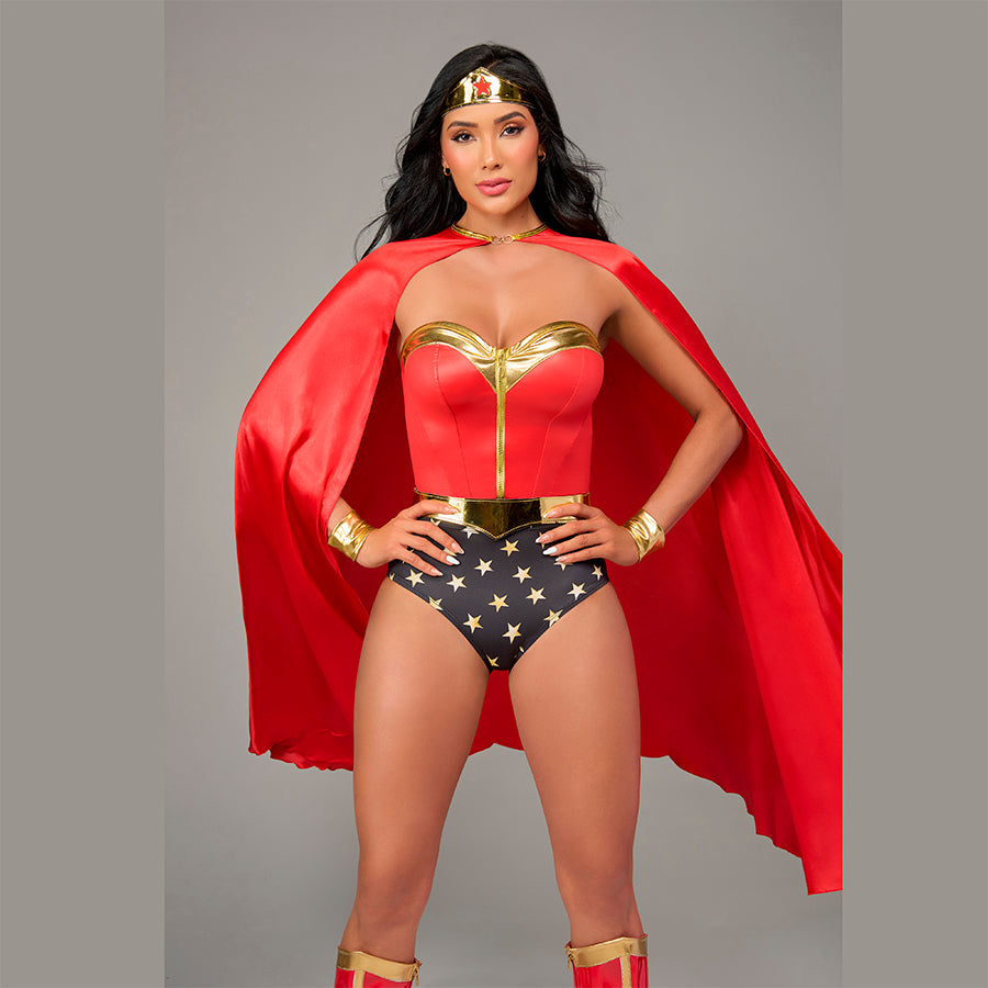 | Incluye | TIARA, CAPA, BUSTIER, CINTURON PANTY Y PUÑOS |