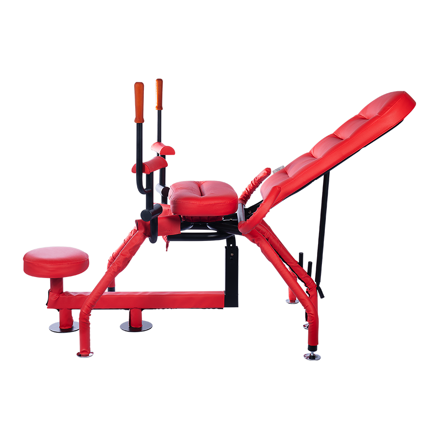 Cuenta con 6 bases para una excelente estabilidad, un sillón en la parte inferior ya sea para que se siente, apoyes tu cabeza o te arrodilles y en la parte superior encontrarás la estructura de la silla con agarres para las manos y apoyo para los pies.